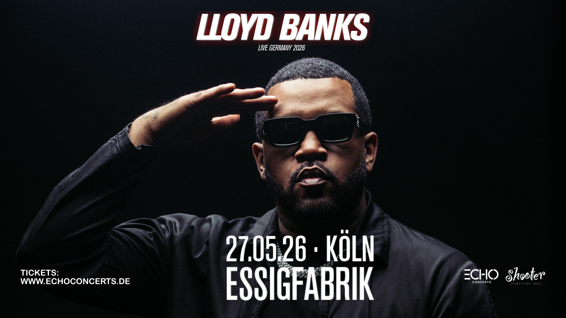 Ende May 2026 kommt der Hip-Hop Künstler LLOYD BANKS für live Shows nach Deutschland. Rapper LLOYD BANKS bringt seine Beats, eine Mischung aus Hip-Hop und R&B nach Frankfurt, Köln, Stuttgart, Hamburg und Berlin.